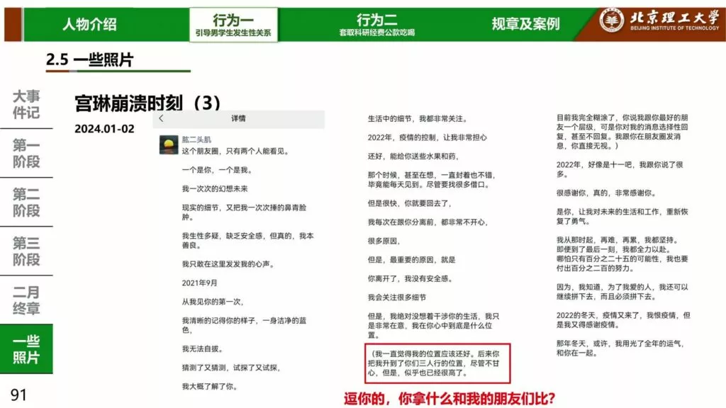 内地高等学府北京理工大学近日曝出震惊事件,男教授宫琳被指控与多名男性学生存在不正当关系。这位教授为了满足自身的私欲,长期对学生施加高压,通过各种手段B迫他们屈从于他的性要求。此事实在令人震惊,一个男教授竟然以这样的方式追求个人私利,更让人愤慨的是,他为达目的不惜采取不择手段的方式。
