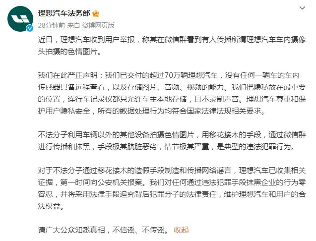理想汽车紧急发布法务公告