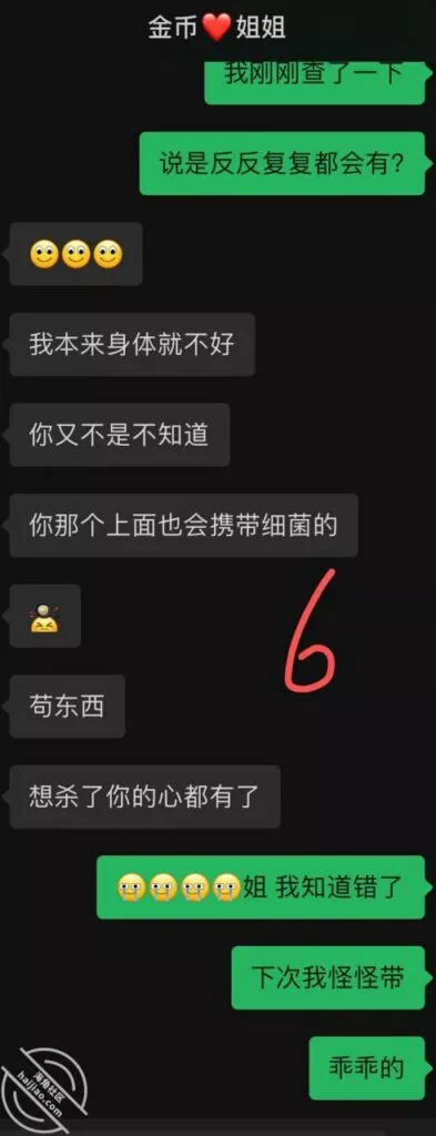 我今天还和小妹出去玩呢。结果收到了我姐给我发来的信息。因为我上次做i没带套,还Cao了很长时间。导致我姐明道破了口子。加上来了例假。得了霉菌性明道炎。我查了一下,这个病反反复复的,好不清了。说是男生带身体上都带病菌。也有可能是我内裤袜子一起放洗衣机里面一起洗。导致我内裤上面沾染了病菌,然后这个病菌又传染给我姐。但是我和小妹一直做的时候,也没啥事呀。突然觉得我姐好像不耐Cao~~不知道怎么回事,就很难。等我这几天和小妹旅游完。我回去哄一哄我姐。哎,希望我姐不要真的生气吧。