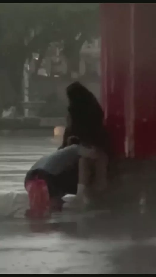 究竟是什么样的爱情竟能让两人忽略了天气的影响,在滂沱大雨的海南三月三广场上,不顾雨水的冷寒,依靠在牌匾下,一对情侣就这么忘我的开始野战doi