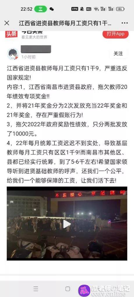11月2日,江西南昌因学校和政府拖欠工资,进贤一中二中的教师进行大罢工
