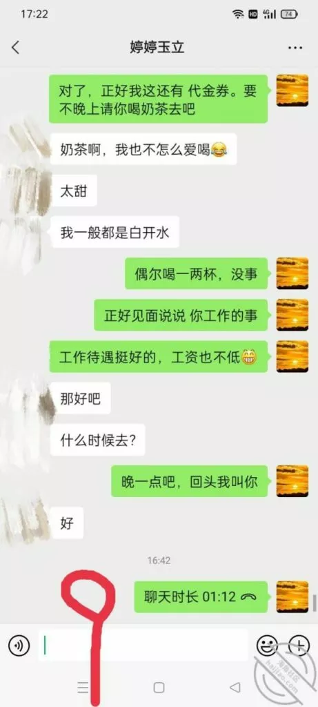 妈的其实我猜到了 她果然叫我别说了 还在这故作矜持 这种时候我们就要见好就收了不然就容易聊不下去了 换个话题缓和一下 她不是想要工作么 我就随便给她找一个,能不能上班还不一定呢, 让她欠我一个人情 趁机用喝扔茶的理由给她约出来