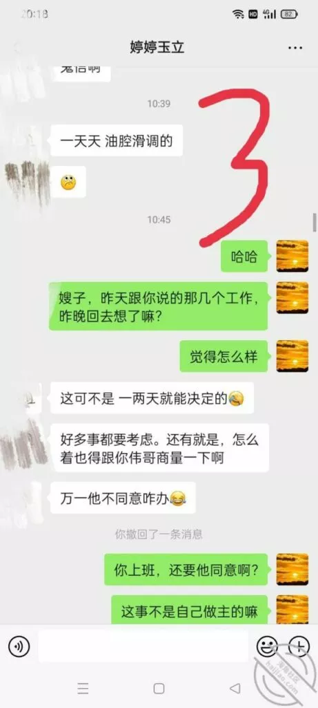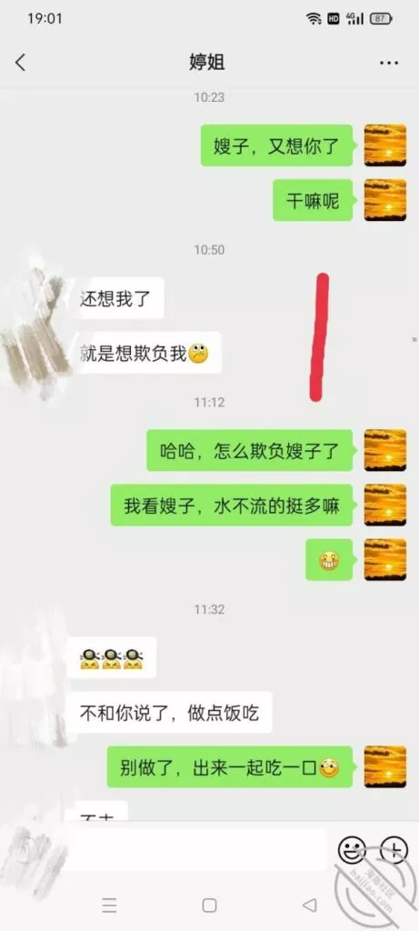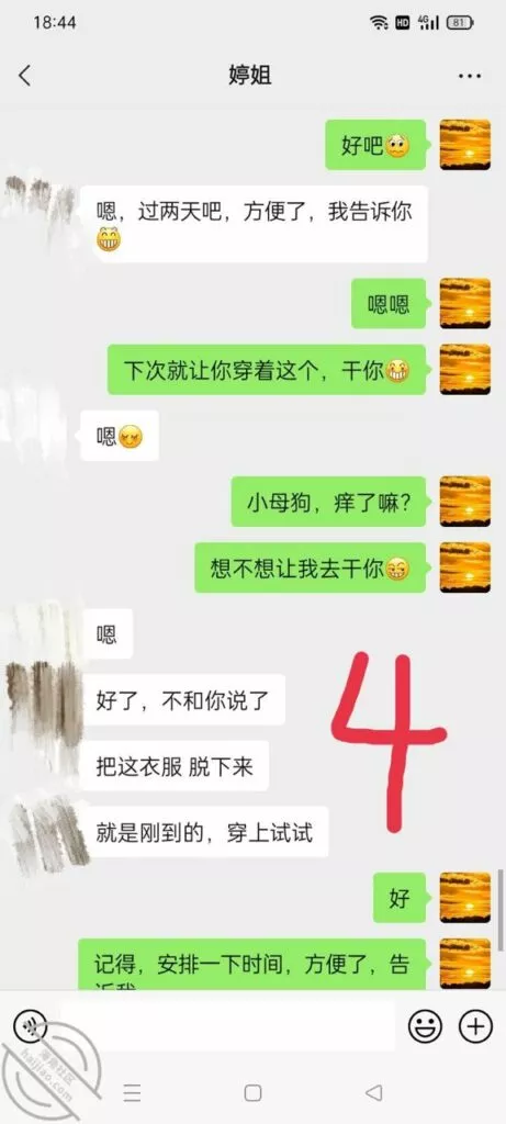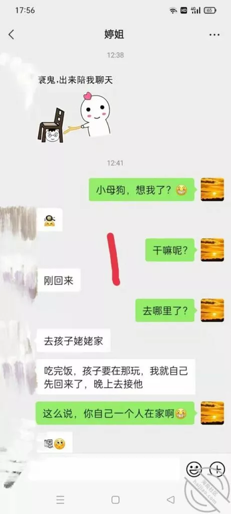 要我说我现在得反思一下了,我不能太着急。要沉得住气,女人就是这样,你进她就退,你退她就进的jb玩意儿,说白了就是贱。所以我这次的聊天以退为进,以守为攻。这次的聊天主要是为了套出来她的一些个人情报,然后在让聊天进一步深入。就看第四页和第五页的内容,她跟我滔滔不绝的吐露心声,就说明这个b日常绝对很寂寞很孤独,跟国伟的关系也就是表面上,那话咋说的,中年夫妻亲一口恶心大半宿。所以我觉得我还是有可乘之机的。而且看得出来她跟婆婆的关系也不好,国伟不在家,估计跟婆婆也没有过多交集。这种女人啊内心最饥渴了,渴望得到男人的关注。所以我就是那个关注关怀他的男人。要让她习惯我们的亲密关系,所以我故意提出要跟她做闺蜜。虽然她看起来很不情愿,但我觉得她心理肯定乐开了花。我试图叫她出去喝酒,结果她不去,不过她肯定不去,她那么能装清高,肯定不能那么容易就答应啊。这很正常,这个b开始欲擒故纵了。就直接不回我最后一条消息,这个b故意让我等了一个下午,这就是欲擒故纵。女人开始跟你欲擒故纵就说明她想得到你,但是又不好意思自己主动,所以就想让你主动,这就是清高b的惯用手段。也就是说,我很快就能得到这个b女人。