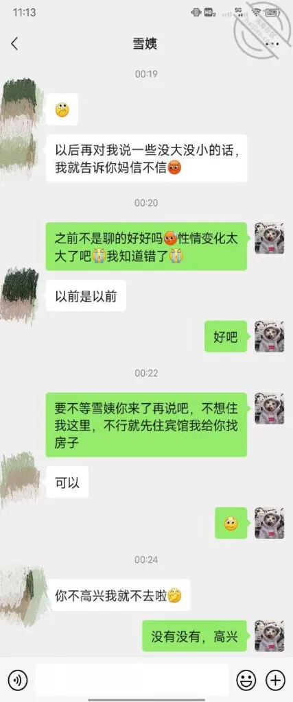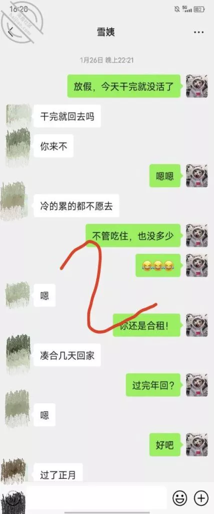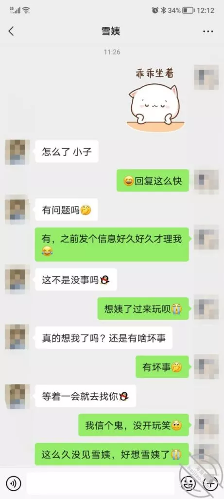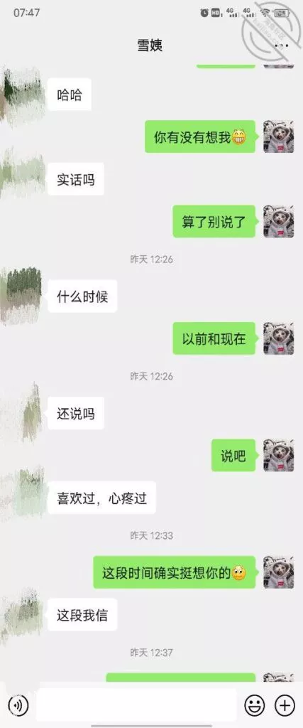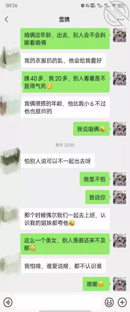 这是快过年的时候跟雪姨聊天的一部分聊天记录