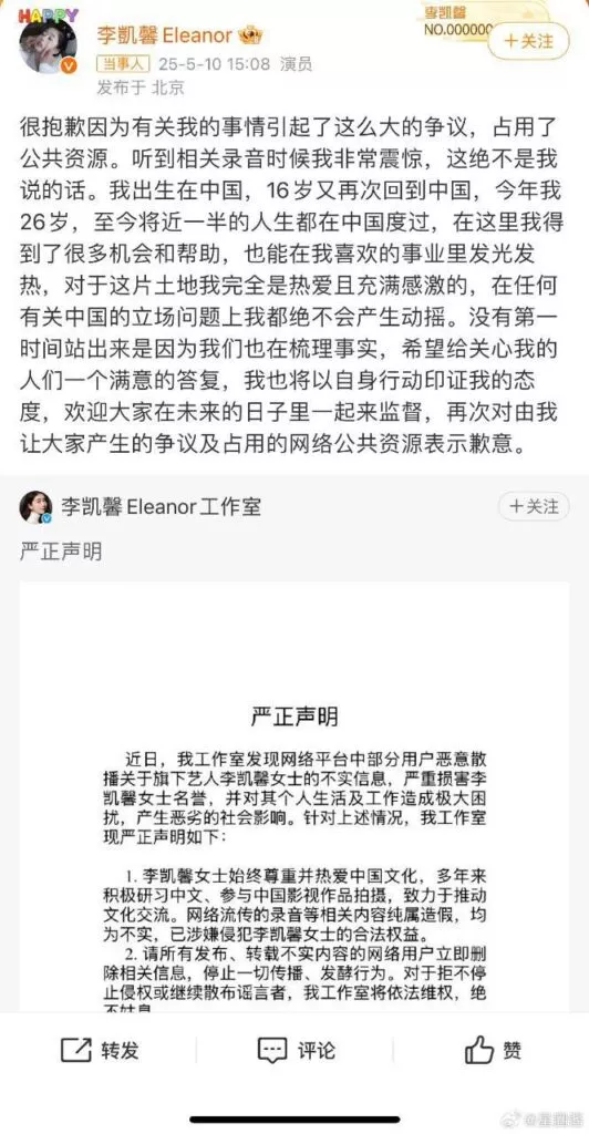吃饭还砸锅?华裔女演员李凯馨陷不正当言论风波录音曝光