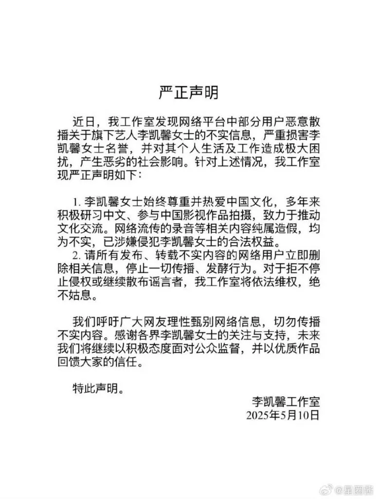 刚在内娱小有名气的新加坡华裔艺人李凯馨因疑似辱华的录音泄露而遭到网友强烈抵制。录音中她发表的不当言论显示出对中国的轻视,与她在中国营造的形象形成反差。虽然她称录音被断章取义,但官方媒体批评她“吃中国饭砸中国锅”。