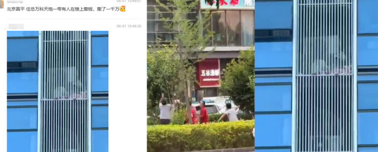 不慎错失了一次发财良机,近日有消息称在北京昌平的万科天地,一位富豪从高楼向下狂撒一千万人民币,吸引了路过的市民疯狂抢夺。