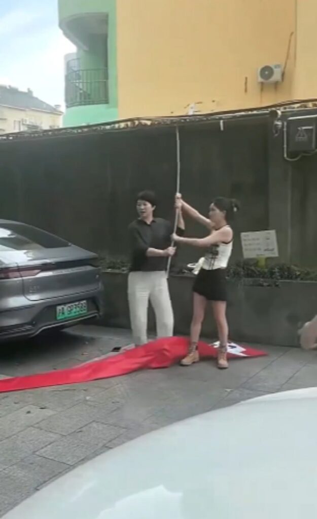 浙江嘉兴滨水广场抓歼名场面原配怒拉横幅小区嘲讽歼夫银妇