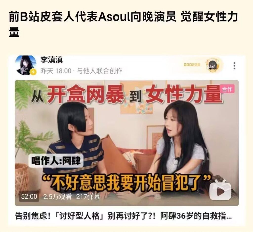 左右脑互搏?B站asoul虚拟女团向晚演员李奕知三当三却觉醒女性力量?