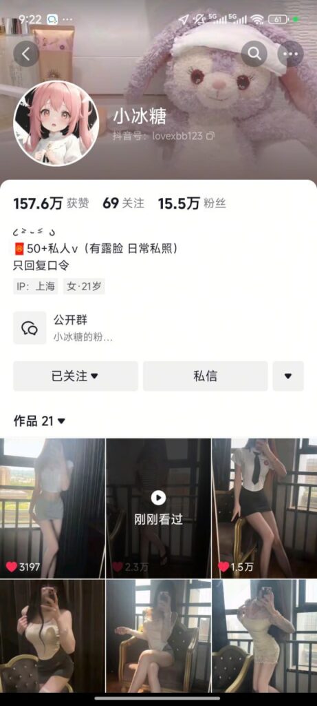 抖音粉丝达15万的反差系网红“小冰糖”,以清纯外表与若隐若现的性感形成鲜明对比。她像邻家女孩般自然随性的挑逗不显做作,却格外有魅力,令人印象深刻。