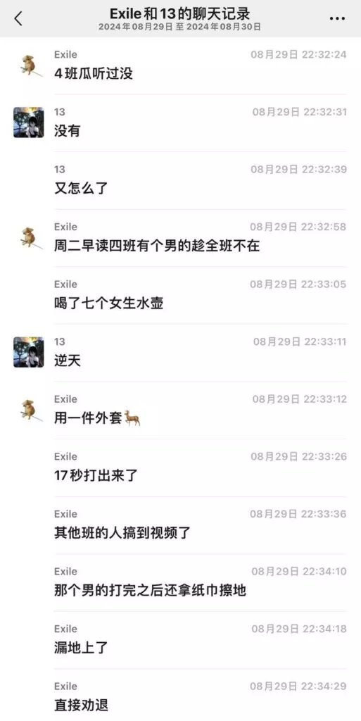 广东佛山三水华侨中学王智帅偷喝女生水杯用衣物打飞机