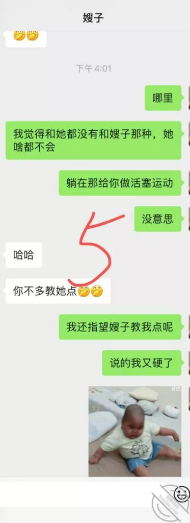 哈哈,兄弟们,有进展啦,嫂子昨天一天没有理我了,醒来看到大哥给我发信息让我多帮嫂子带侄子,嫂子也发消息叫我晚上帮她看小孩,同床异梦咯,想想都好兴奋呀,期待晚上快点到来,等我消息哦,争取拿下