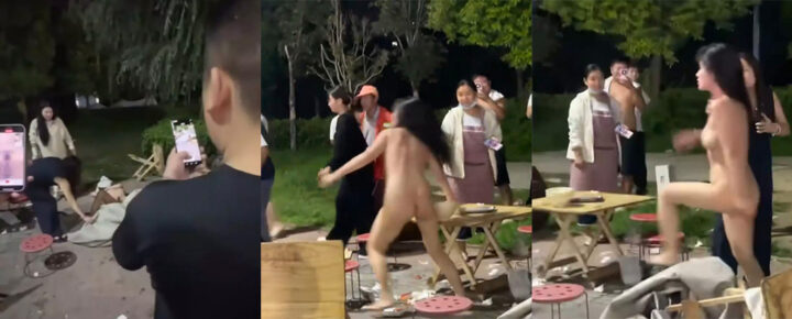 几个菜喝成这样安徽夜市大排档小仙女醉酒果奔砸场路人