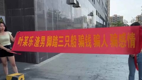 顺德渣男叶某乐脚踏三只船被曝光大街拉横幅