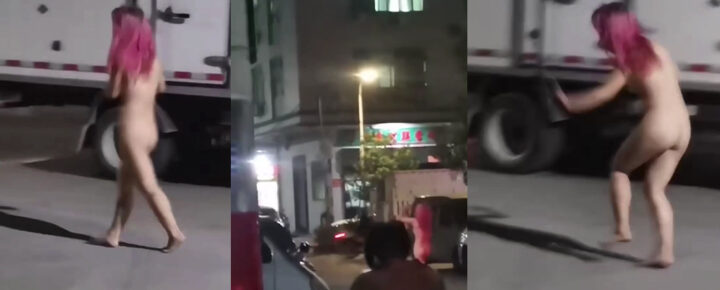 广东汕头深夜街头精神小妹全果出行身段妖娆吓坏路人