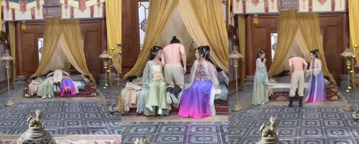 陛下你怎么了?擦边短剧拍摄现场美人太刺激男演员下身失守出来了