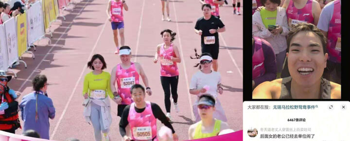 无锡马拉松赛场野鸳鸯躲镜头自拍视频竟拍到人妻出轨
