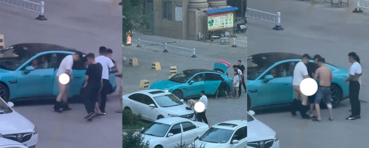 东营蓝色小米su7男同车头野战光天化日看傻眼gay圈太逆天了